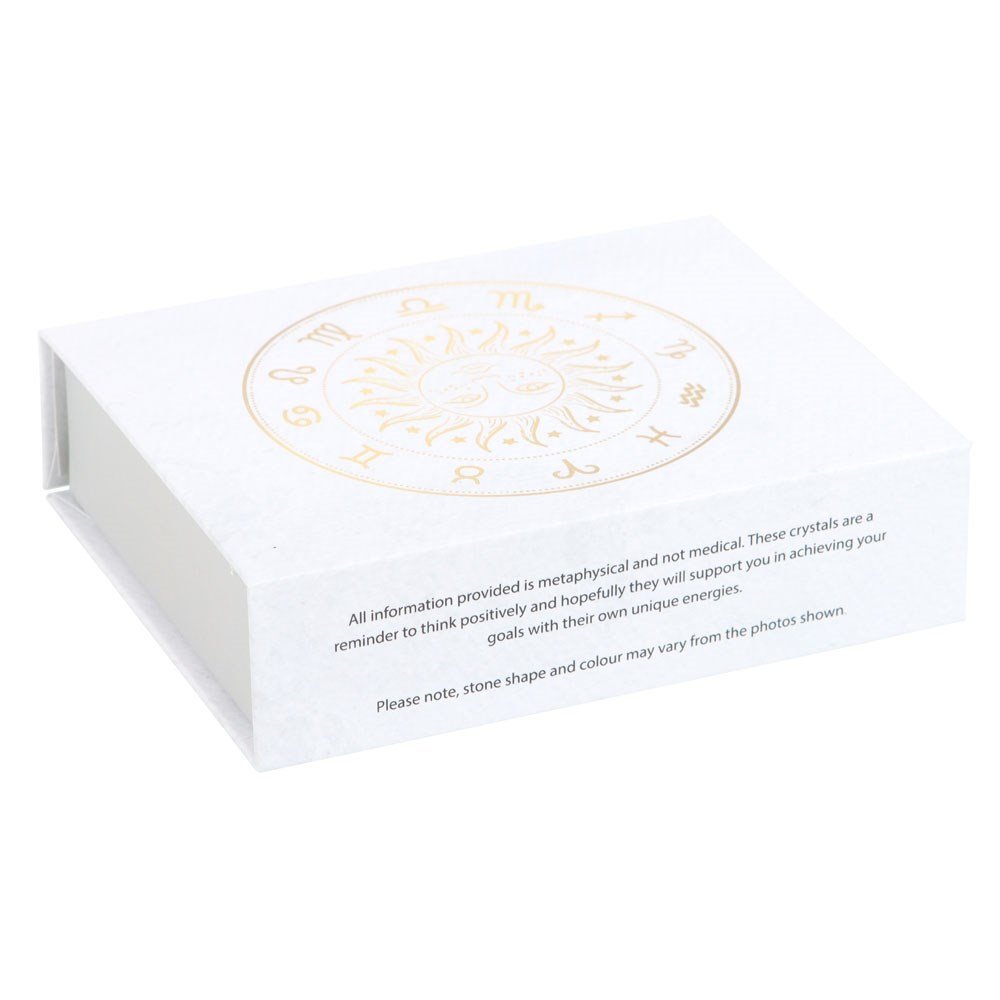 Ideal para meditación, altar o intención diaria; incluye caja imantada con la guía de cada cristal y bolsa de terciopelo para cuidarlos.