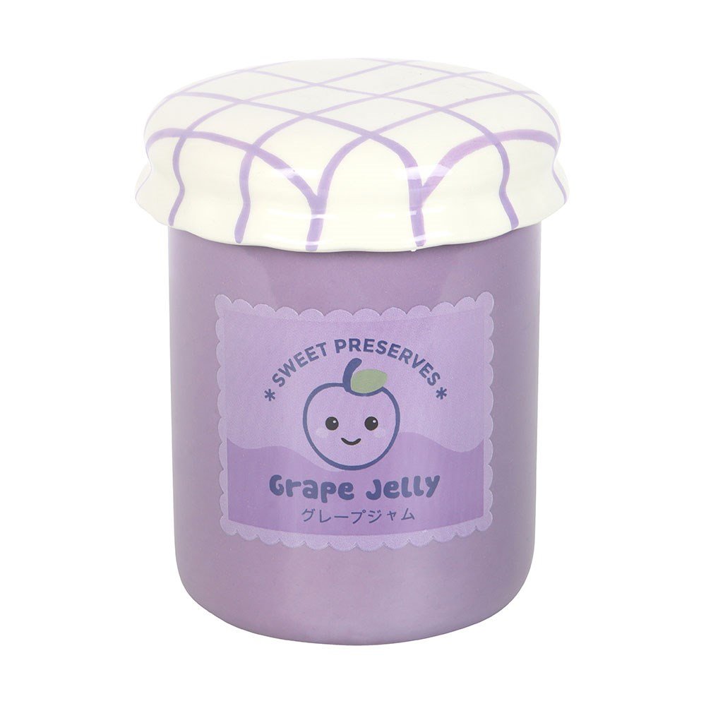 Un encantador quemador con forma de tarro de mermelada de uva que perfuma tu hogar mientras añade un toque kawaii dulce y divertido.