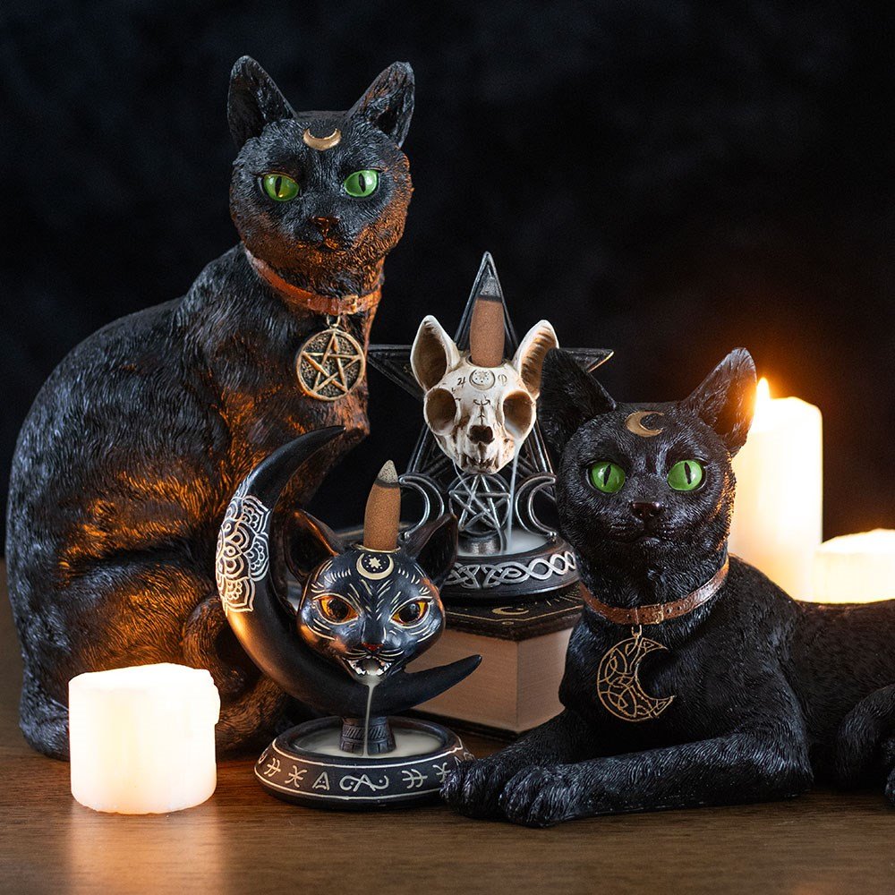 Quemador de incienso de cono con forma de luna de gato negroDisponibilidad: Hay existencias