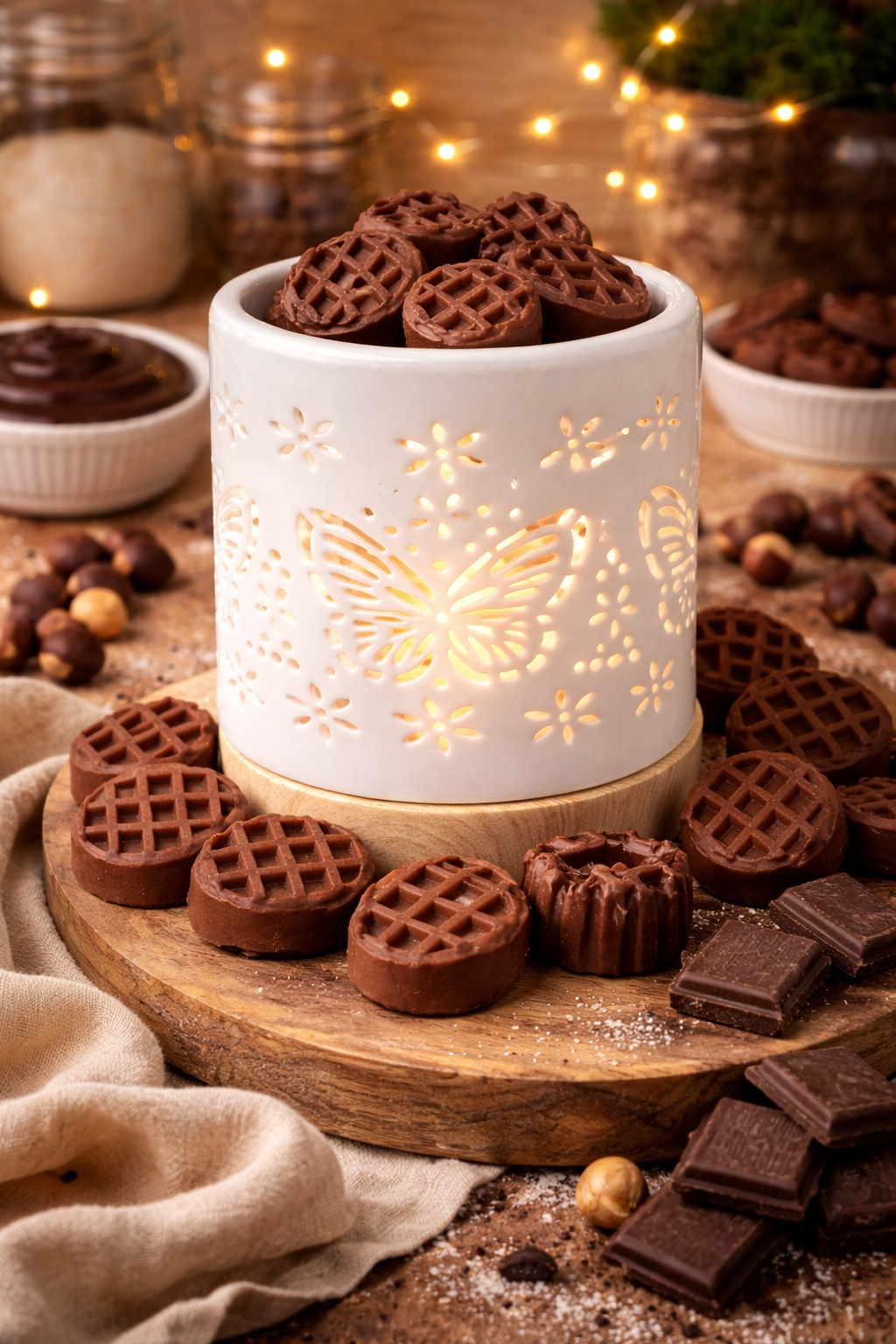 Volcán de Chocolate – LanaMelt aromático con cera natural de sojaVolcán de Chocolate es una fragancia profunda, golosa y envolvente que transforma cualquier rincón en una auténtica pastelería gourmet.